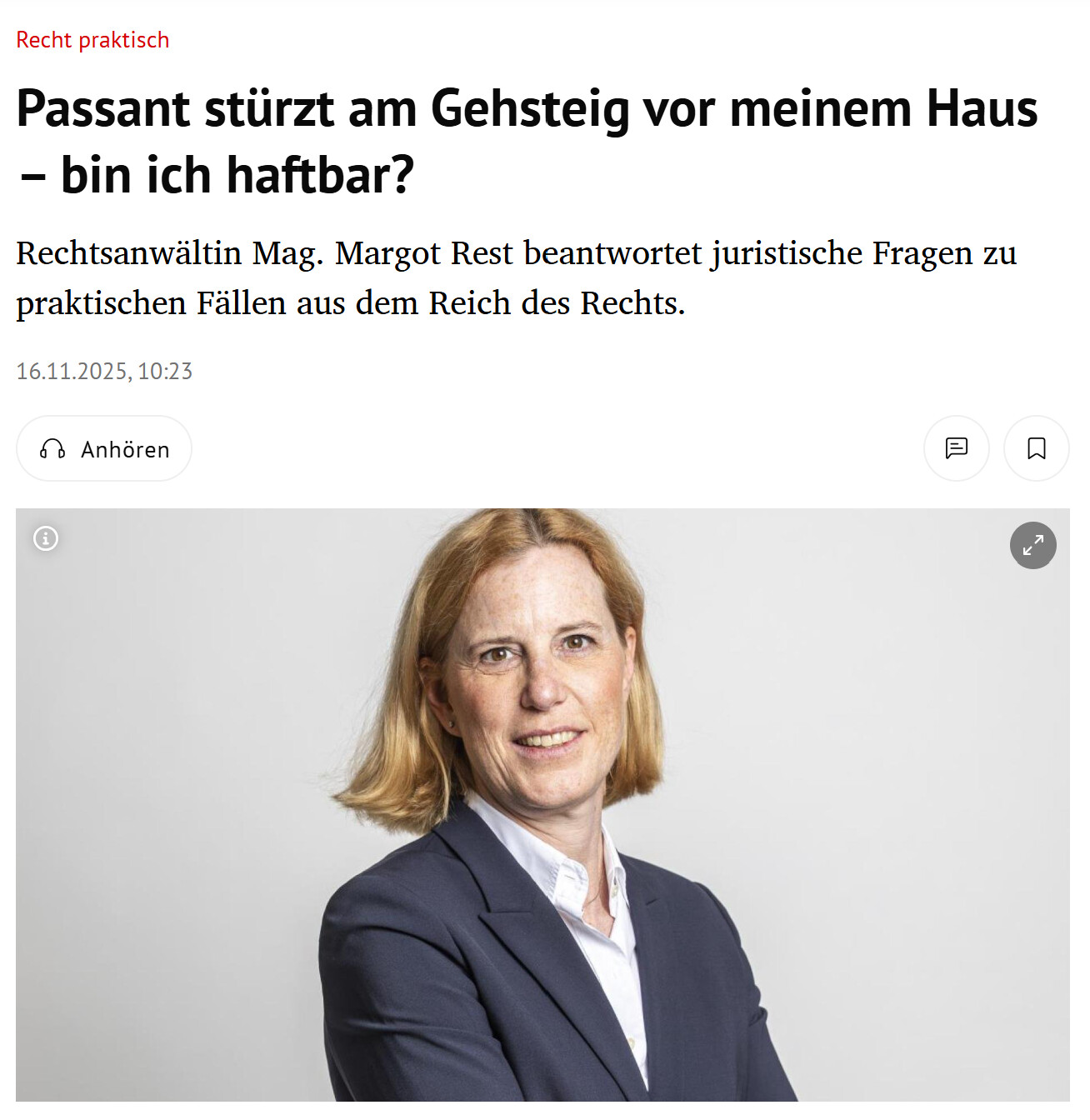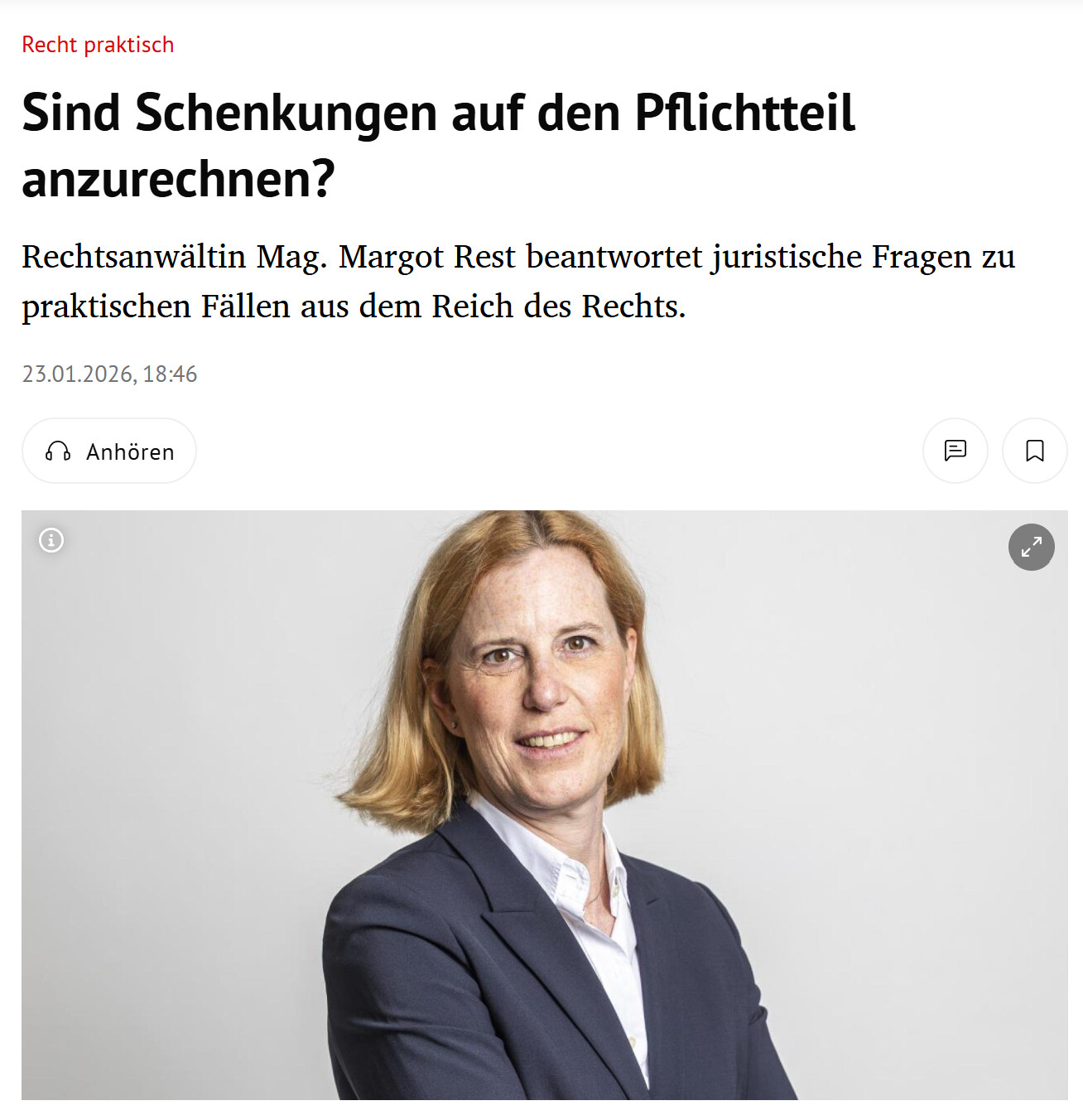 Rechtsanwältin Mag. Margot Rest beantwortet juristische Fragen zu praktischen Fällen aus dem Reich des Rechts.