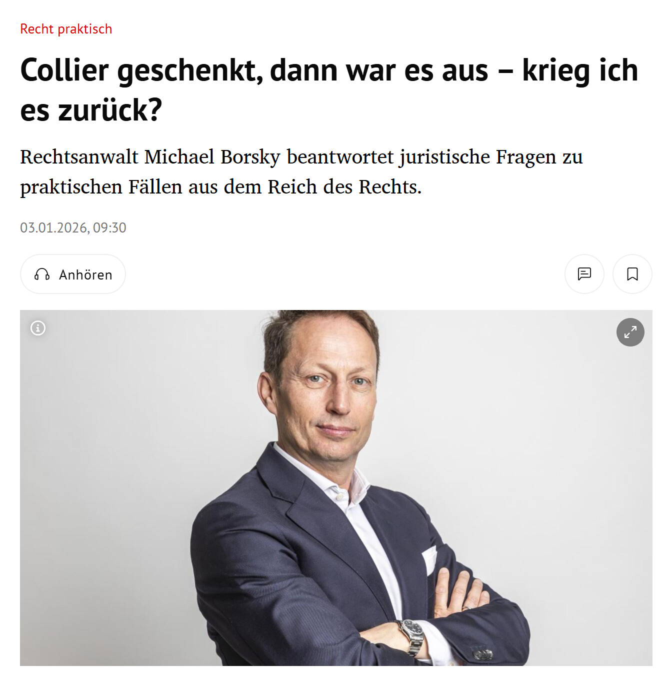 Rechtsanwalt Michael Borsky beantwortet juristische Fragen zu praktischen Fällen aus dem Reich des Rechts.