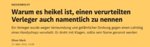 Warum es heikel ist, einen verurteilten Verleger auch namentlich zu nennen